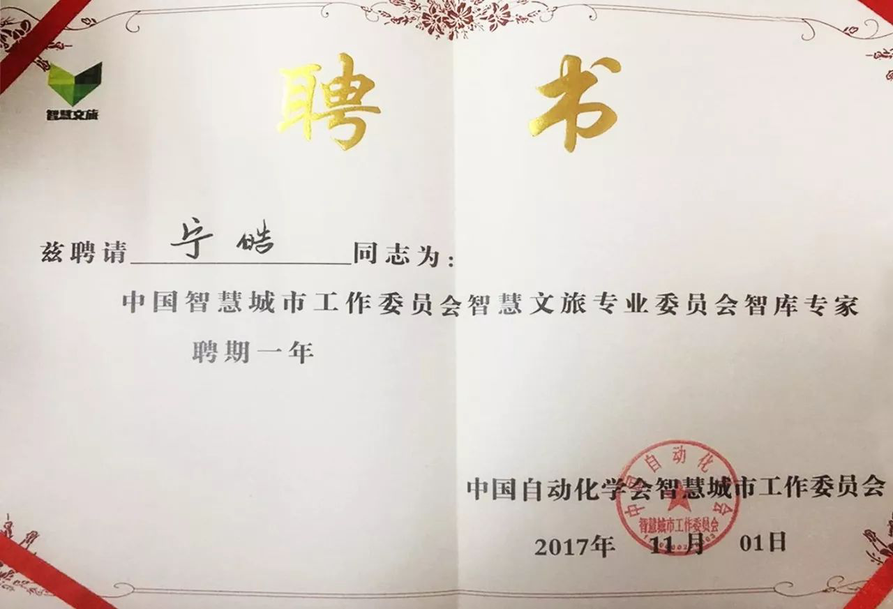 近日,中德宏泰董事长宁皓被中国自动化学会智慧城市工作委员会聘为中国智慧城市工作委员会智慧文旅专业委员会智库专家。