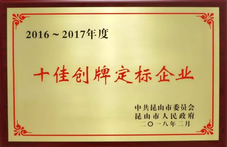 中共昆山市委、市政府授予“十佳创牌定标企业