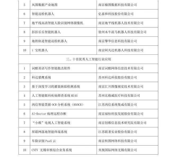 2018 年度江苏省优秀人工智能产品(应用)名单公示