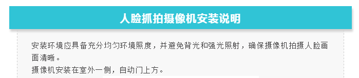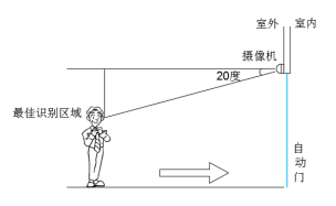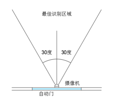 水平方向上,确保摄像机安装在自动门中间位置。如上图所示。如摄像机无法安装在中间位置,将无法达到最佳识别效果。