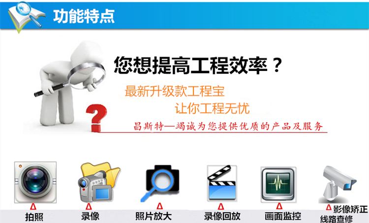 经客户反馈,老款工程宝,不够稳定,电池不够耐用,无法直接从主机上删除多余视频图片—占空间,每次开机后又需要重新设置参数—麻烦,您们的意见我们非常重视,将不断努力对产品进行改善,以上问题全部处理OK,于2013年11月底,最新款一代工程宝终于完善改制,谢谢您的一路支持伴我们成长,我们会用更好的服务和产品来报答您。