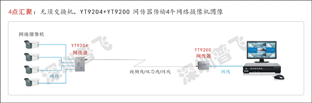 如果扩增的点数不多况且与原来的点位相近,只需要使用一台4口网传器就可以,如图: