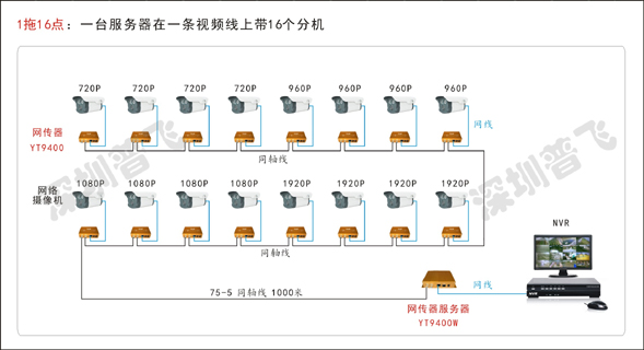 模拟监控中还有一种方案,采用共缆一线通方式做的,一条视频线传16个摄像头的,也可以通过这种设备来完成系统升级: