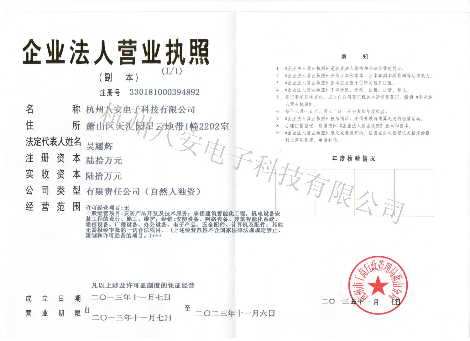 安防产品开发及技术服务:承接建筑智能化工程,机电设备安装工程的设计、施工、维护;经销:安防设备、网络设备、建筑智能化系统、通信设备、广播设备、办公设备、电子产品、五金配件、计算机及配件;其他无需报经审批的一切合法项目。