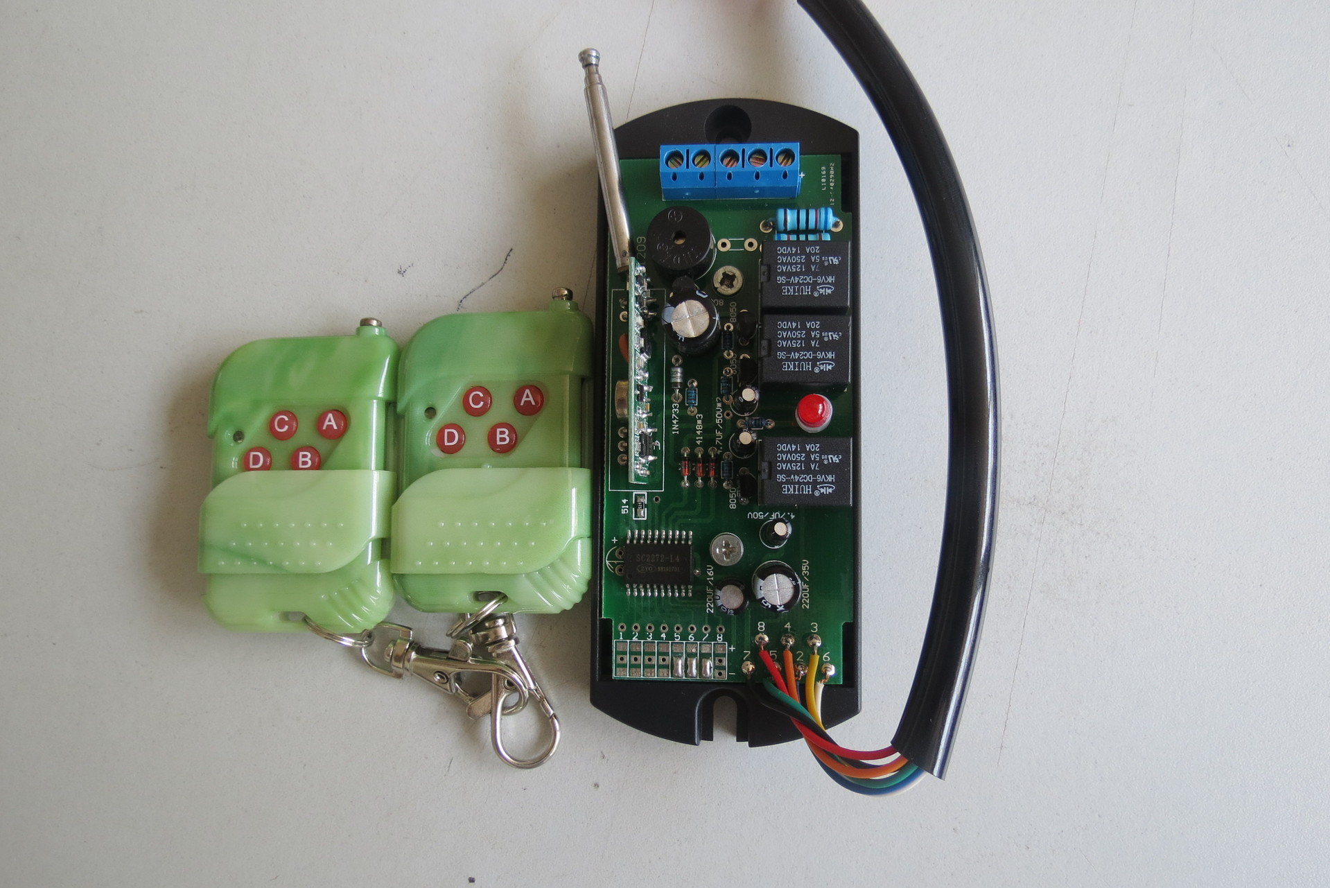 我公司产品主要有百胜、红门、捷恩西、晶源、建星、威捷、顺昌、智通达、恒达、东荣、优耐特、杜亚、先锋、捷通、索玛、西赛德、LED系列等无线遥控器(焊码遥控器、对拷遥控器、拨码遥控器),伸缩门控制器、道闸控制器、无轨伸缩门控制器、外挂卷帘门控制器(可含电机),管状电机控制器等;无线遥控开关、红外线遥控开关、220伏遥控开关、12伏遥控开关、24伏遥控开关、86面板无线遥控开关、遥控电机正反转遥控开关、红外遥控插座、红外遥控开关等;遥控器有:推盖遥控器、小四键遥控器、小辣椒遥控器、防水遥控器、别克遥控器、猫眼遥控器、超薄带底座遥控器、金属遥控器、86面板遥控器、1000米遥控器、3000米遥控器、大功率遥控器等;接收模块有:普通5伏接收模块、3伏低功耗接收模块、解码接收模块、学习码接收模块、滚动接收模块、超外差不带解码接收模块、超外差带解码接收模块、发射头、编码发射头等,另可按客户要求订做设计生产各类无线遥控类产品(包括尺寸、功能等)。本公司承接订做开发,质量保证,价格便宜。欢迎来电来函咨询和洽谈相关合作事宜,电话:18682004908或15625277295网址:www.ykkg.com吴小姐QQ: 2877567119;诚信通:wucui_aosheng诚信通网址:http://ykkgcom.cn.1688.com/?asker=ATC_userinfo