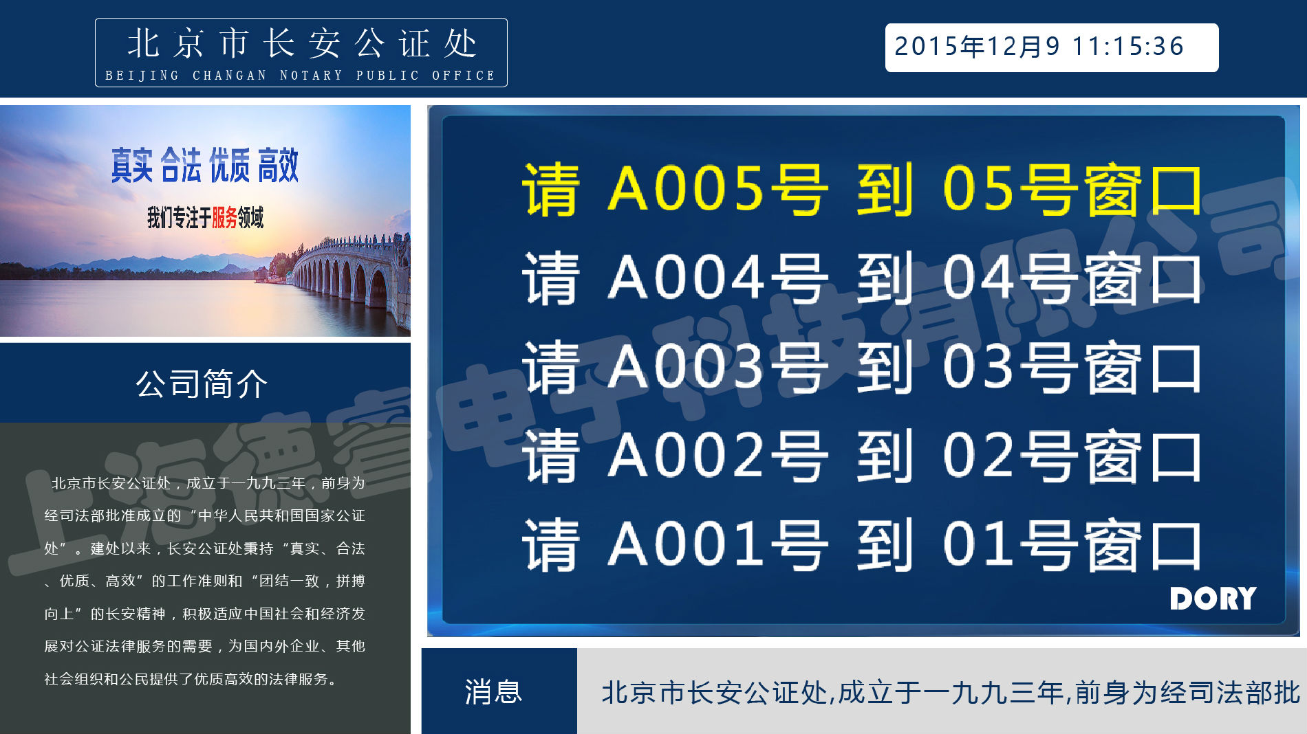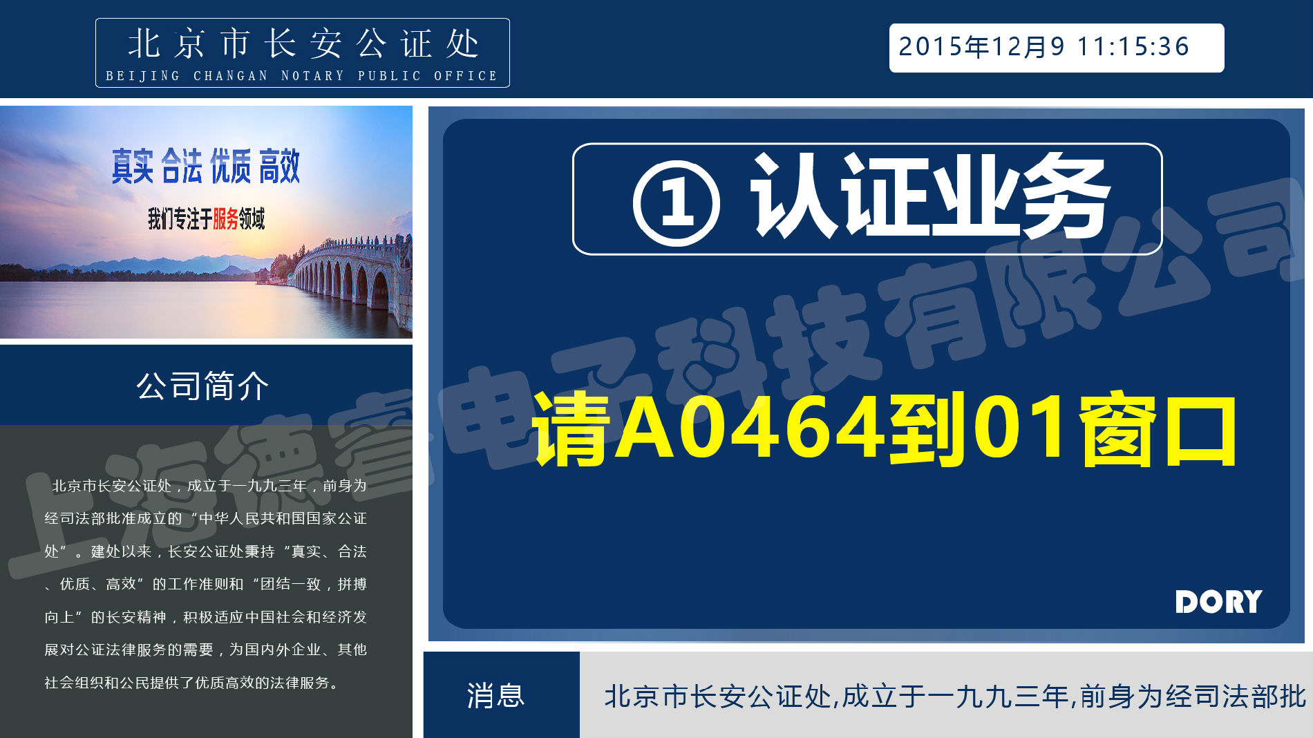 4、综合屏:通过综合屏实时显示当前办事人员票号,下一位等待办事人员票号,让办事人员可直观的了解该窗口的办事进度。