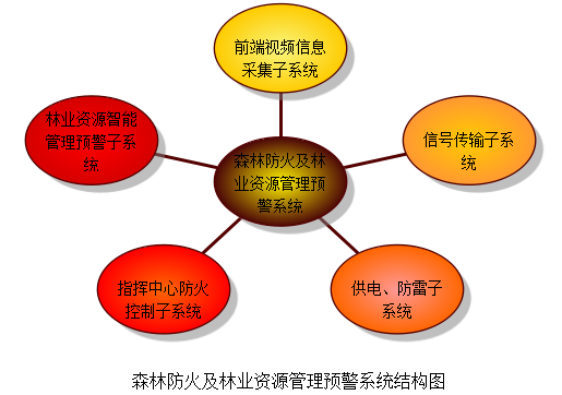 本系统在监控森林火情的同时,还可以对森林资源、生态环境、森林病虫害及野生动物等进行实时动态监控。系统构成如下: