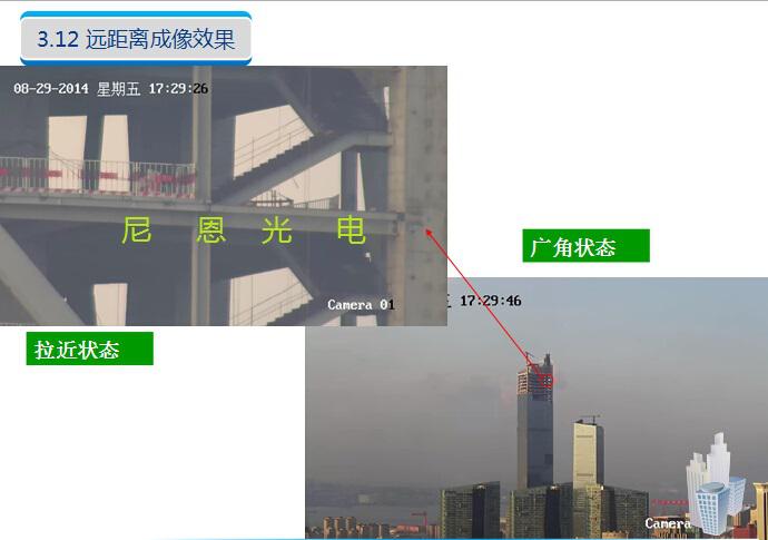 3、可见光视频采集选用远望长焦透雾镜头,红外增透滤片和摄像机DSP处理二合一高效透雾技术,解决可见光学摄像机在雾霾条件下的可视问题;