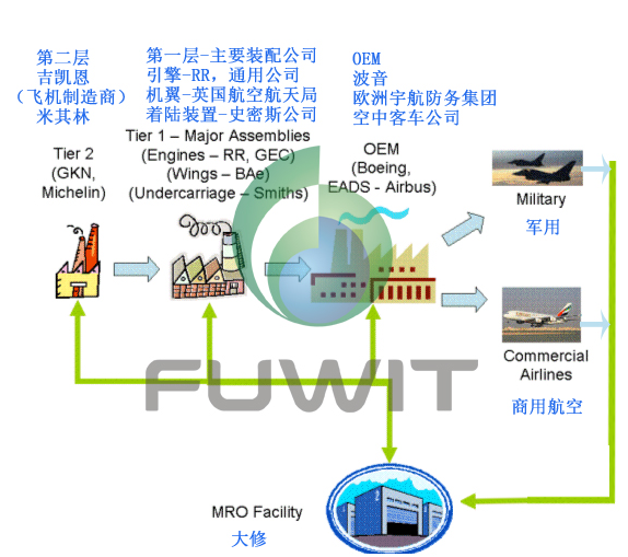 使用RIFD技术来跟踪飞机的零部件,将信息存储在RFID标签上,并建立产品信息系统。当检查员使用移动式RIFD读写器,可以读取到零部件的唯一的RFID标签信息。