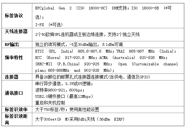 ThingMagic M6e-Micro,一款采用超小型模组结构设计和优异的“快速搜索算法”的超高频RFID模具,可以嵌入到各种常用的手持和便携式设备中。它对标签的读取速度高达750标签/秒,功耗低,接收指令后反应快速,运行稳定,非常适合在本项目中应用。