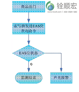 (4)未授权商品(未消磁)经过出口时,门禁检测器测出并发出警报,拦截商品出门。