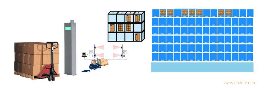 应用场景二:Vega配合RFID板状天线 搭架在仓库入口,对货物和叉车进出仓进行实时扫描、监控。