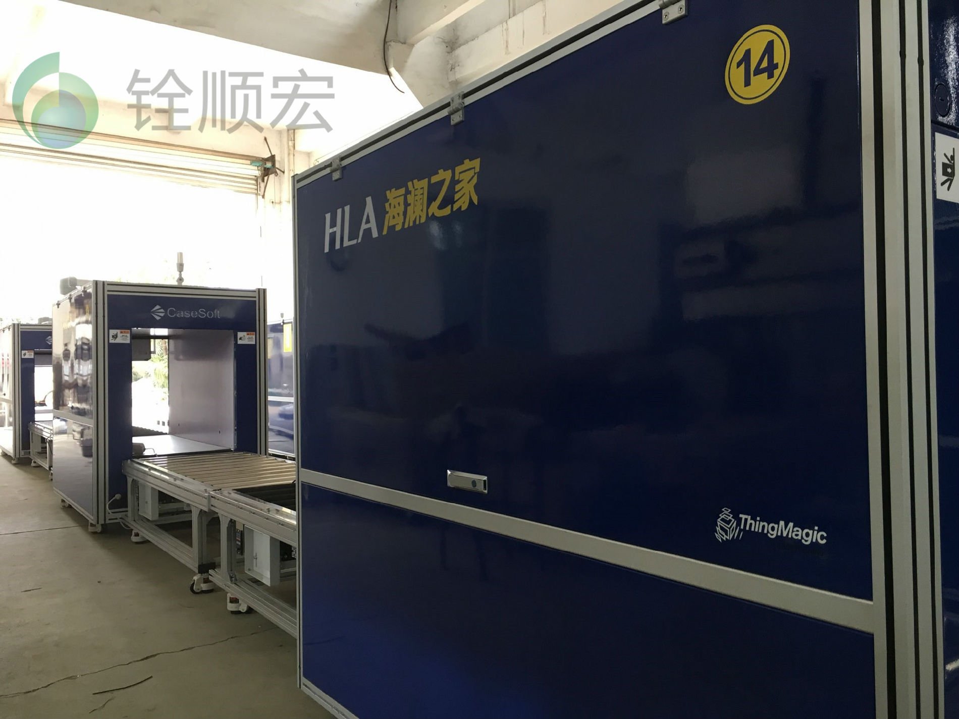 这些捆绑好吊牌的服装,将被一件件叠放到纸箱中,并封装好,开始进入海澜之家的供应链中。在进入海澜之家的储运中心后,一箱箱封装好的服装将随着输送线进入ThingMagic读写设备集成的RFID扫描通道机中,通道机会自动关门,并对这箱服装的RFID标签进行扫描。一箱服装扫描完成后,通道机会把获取的扫描信息,实时上传到RFID智能收发货系统,由系统比对应收和实收的货物数量。如果确认无误,通道机就“自动放行”,向下一环节传送。如果扫描项目与箱规不符,系统会自动排查原因,并明示在显示器上,传送带会将这箱服装送到旁边的人工检测区等待开箱检查。