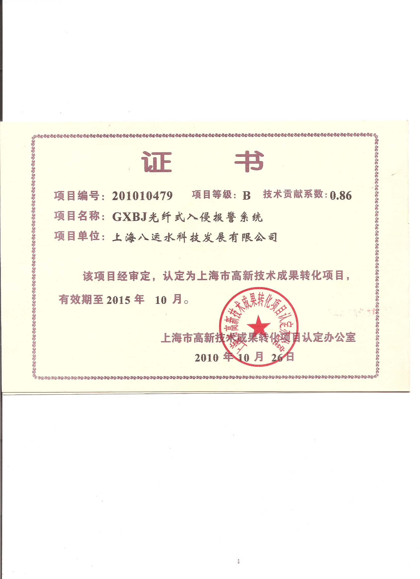 高新技术城果转换证书