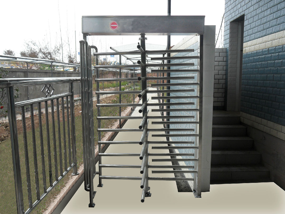 全高转闸主要适用于严格的管制制区如监狱、部队、工厂、可有效防止逃脱,攀爬,钻越。通行人员在通过转闸时, 必须持有效通行卡刷卡系统识别为本系统卡人员方可通过转闸通行,如持非本系统卡机器会报警并拒绝人员通过。通行速度约每分钟可30-40人。全高转闸的机械部分包含一个紧急控制装置,在断电时,中心转臂可自由转动,保证通道通畅;通电时自动锁合。