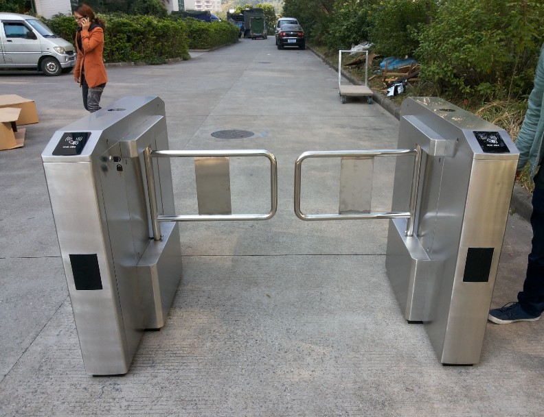 1、通道口使用设备为自动双向摆闸, 使用摆闸共4台,其中,中间两台为双机芯摆闸,两侧为单机芯摆闸。