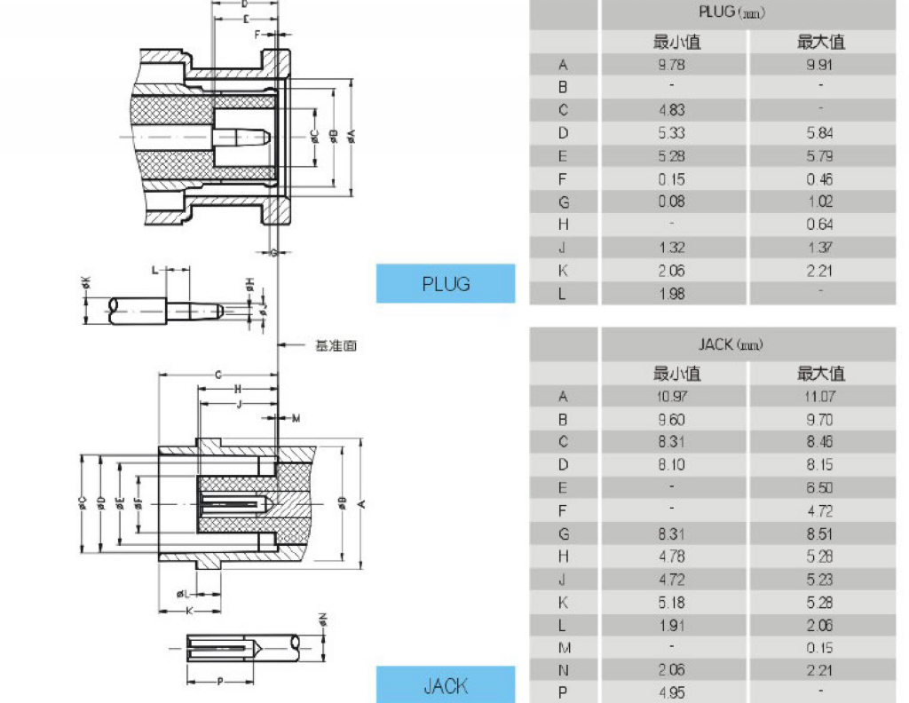 特性阻抗:75Ω 中心接触件: 频率范围:0~2GHz 插针——黄铜,镀金 ;加粗 接触电阻: 插孔——锡青铜或铍青铜,黄金 内导体 ≤2.0mΩ 壳体和其它金属零件: 锌合金,镀镍;加厚 外电阻 ≤0.2mΩ 绝缘体:聚四氟乙烯 绝缘电阻: ≥5000MΩ 线 夹:黄铜,镀银 介质耐压: 1500V 密封圈:硅橡胶 电压驻波比: ≤1.3 连接器耐久性:500次