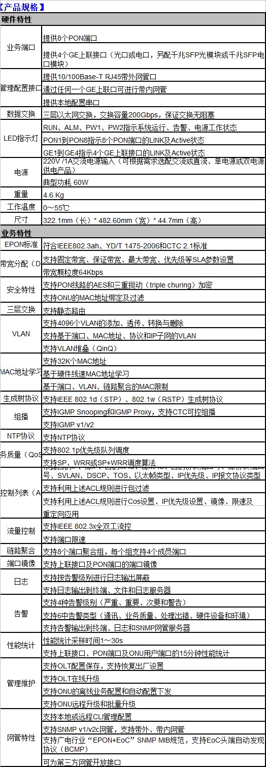 支持动态带宽分配(DBA),带宽颗粒度64Kbps;