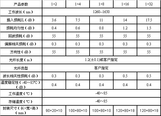 熔融拉锥光分路器主要用于1×2的非均匀分光,支持任意分光比,根据客户需求可定制单波长单窗、双波长双窗和三波长三窗多种类型的分光器。