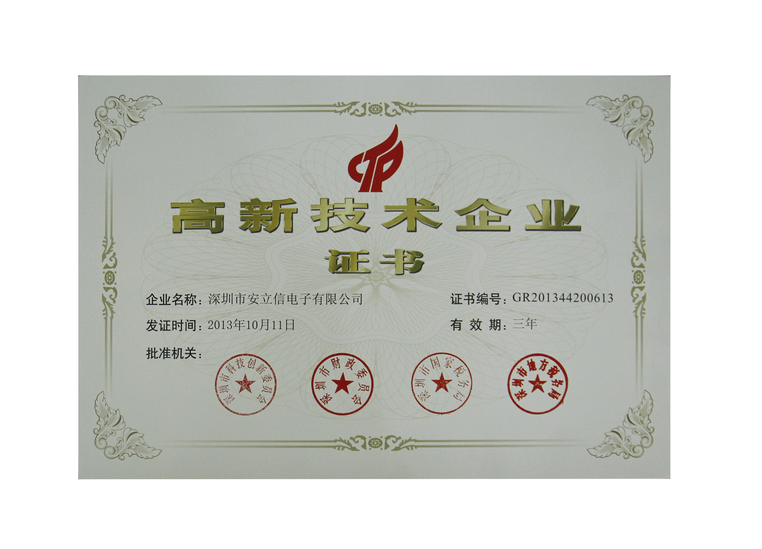 国家高新企业证书