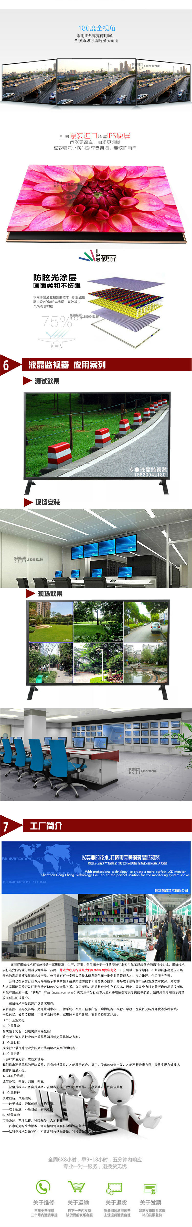 东诚技术产品已经广泛的应用在: 安防监控、证券交易所、交通控制中心、广播系统、军用、城市广场、购物场所、银行、学校、医院以及特殊环境等多种领域。 产品包括:液晶监视器、工业液晶监视器,家用监控显示终端、商业监控显示终端。