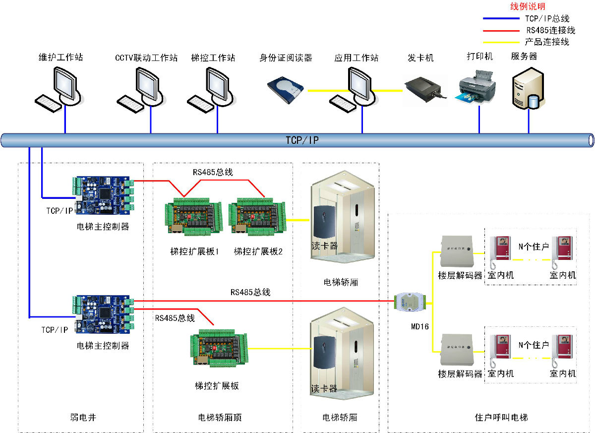 为了能对楼宇内各种人员的进出进行更有效、更安全的管理,有效的控制闲杂人员的进入,采用楼宇梯控系统来实现这种功能。