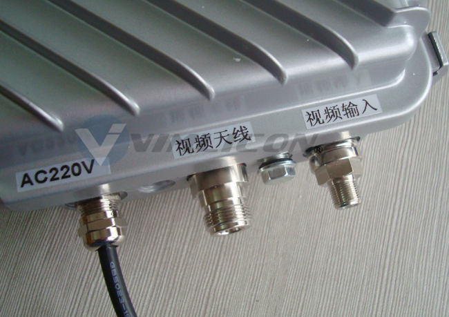 VM-1503SY采用模拟微波方式传输,不压缩,无延时,接口透明,前后端的连接和有线监控接法非常的类似,可视作提供了一段透明的视频线和485线。接口都是常见的接头(BNC、AV),电源一般为220V交流电,也可根据客户要球定做12V电源或配合太阳能等供电。
