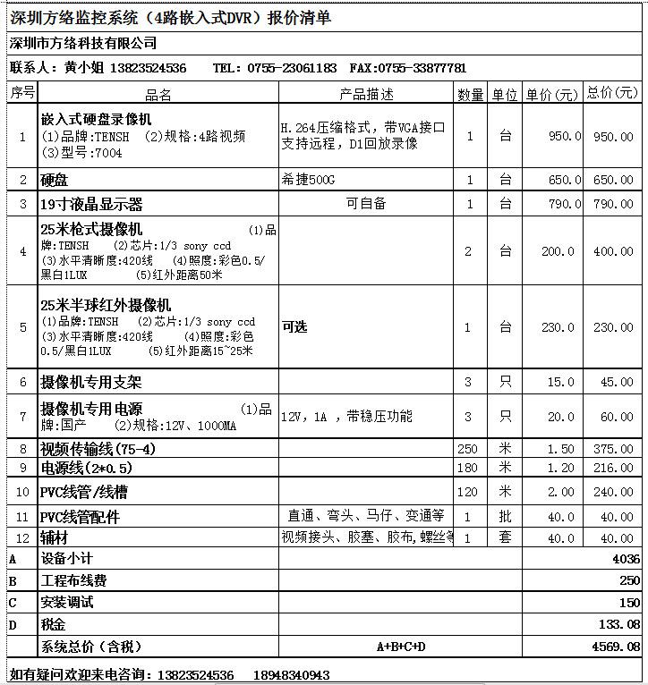 5、剩下的在配料上,主要是铺设线路施工及接口线路等!依据需要架设,主要价格在施工及摄像头上(摄像头的质量差距很大),其他都是通价!