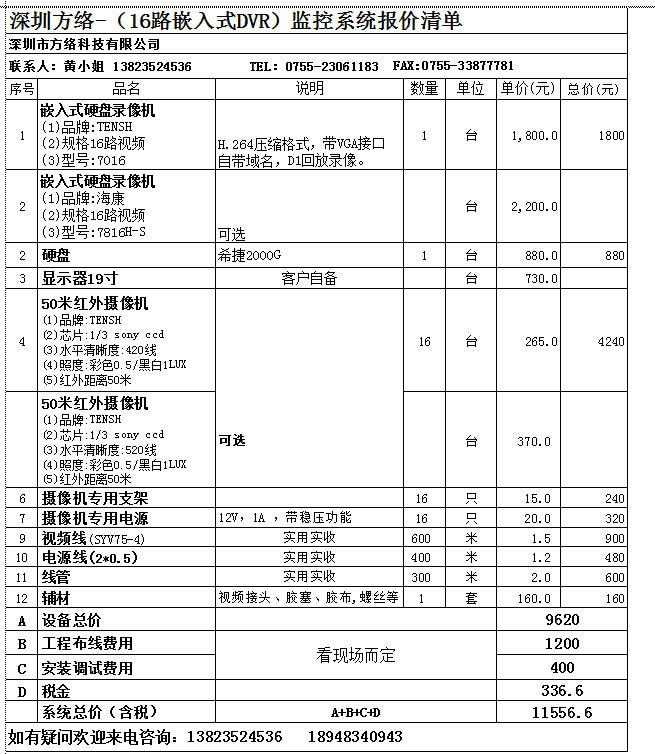 这个不用担心,深圳方络除了提供优质正品低价的视频监控设备以外,深圳地区还提供免费上门设计方案服务,提供安装维护服务(当然要另外收费了)
