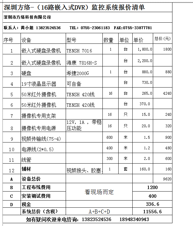 出租屋监控安装 16路监控系统报价参考: