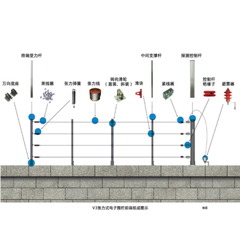 ●安全可靠:前端金属杆和张力线等机械部件均不带电,对入侵者没有人体伤害