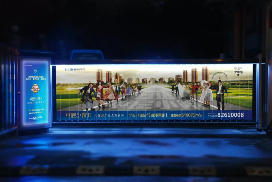 3.强制传播:道闸广告安装在物业的出入口,是人们出入必经之地,按照人的生理反应,当开启的道闸给车主和业主放行时,受众群体肯定会注意面前的活动空间,以确定可以安全通行,所以道闸广告具有强制传播的效果。