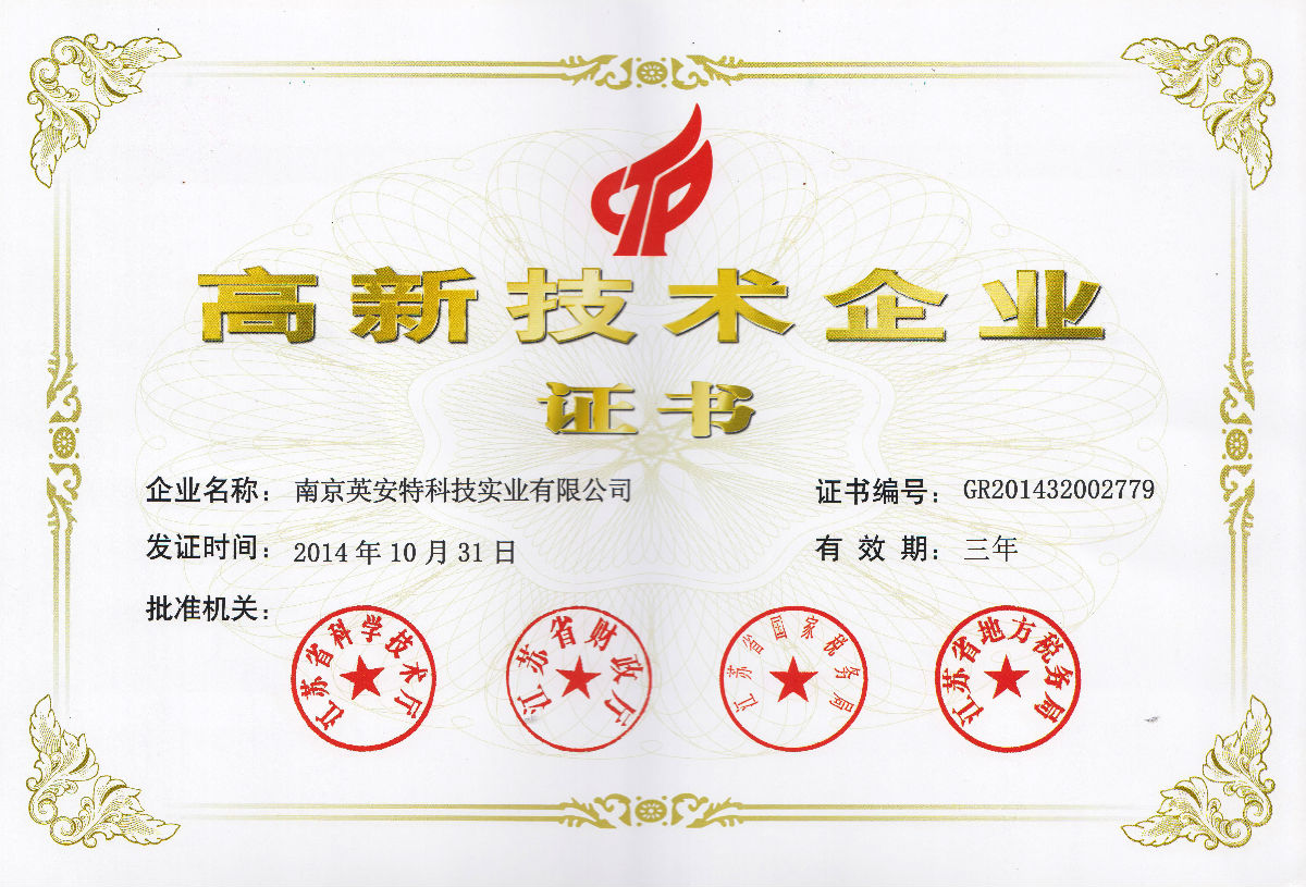 热烈祝贺英安特科技顺利通过高新技术企业认证