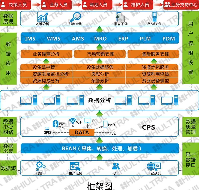 瀚岳“R联智造”包含CPS监控管平台、智能采集传感单元、装备测控分析管理系统、智能仓储物资管理、装备后市场客户服务平台、装备智能测控服务云6大部分。