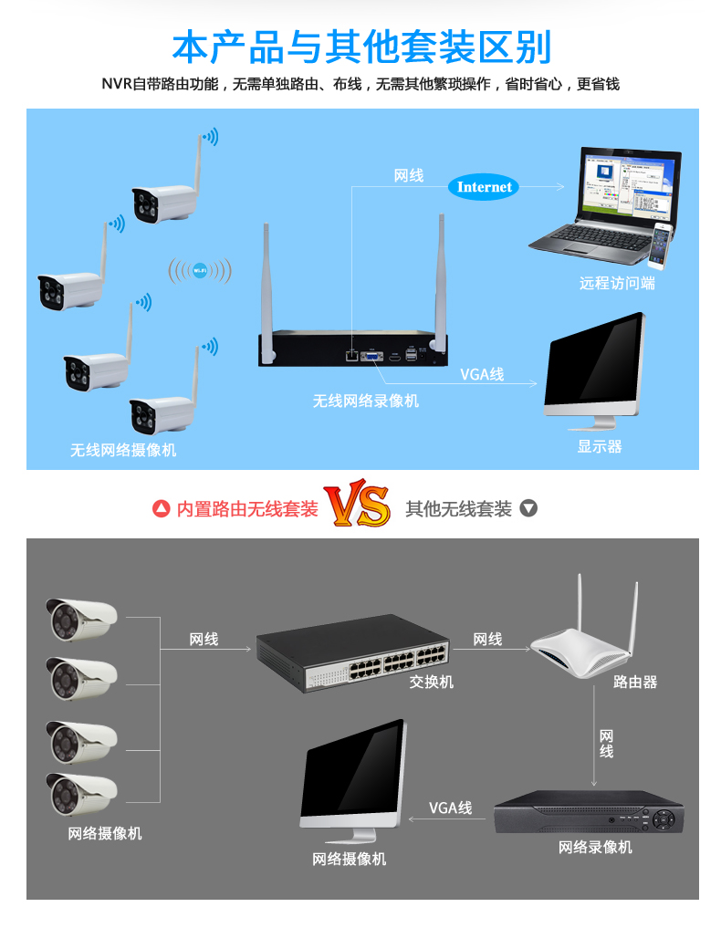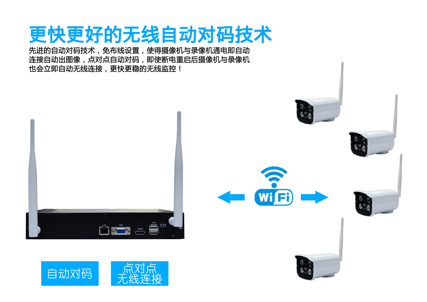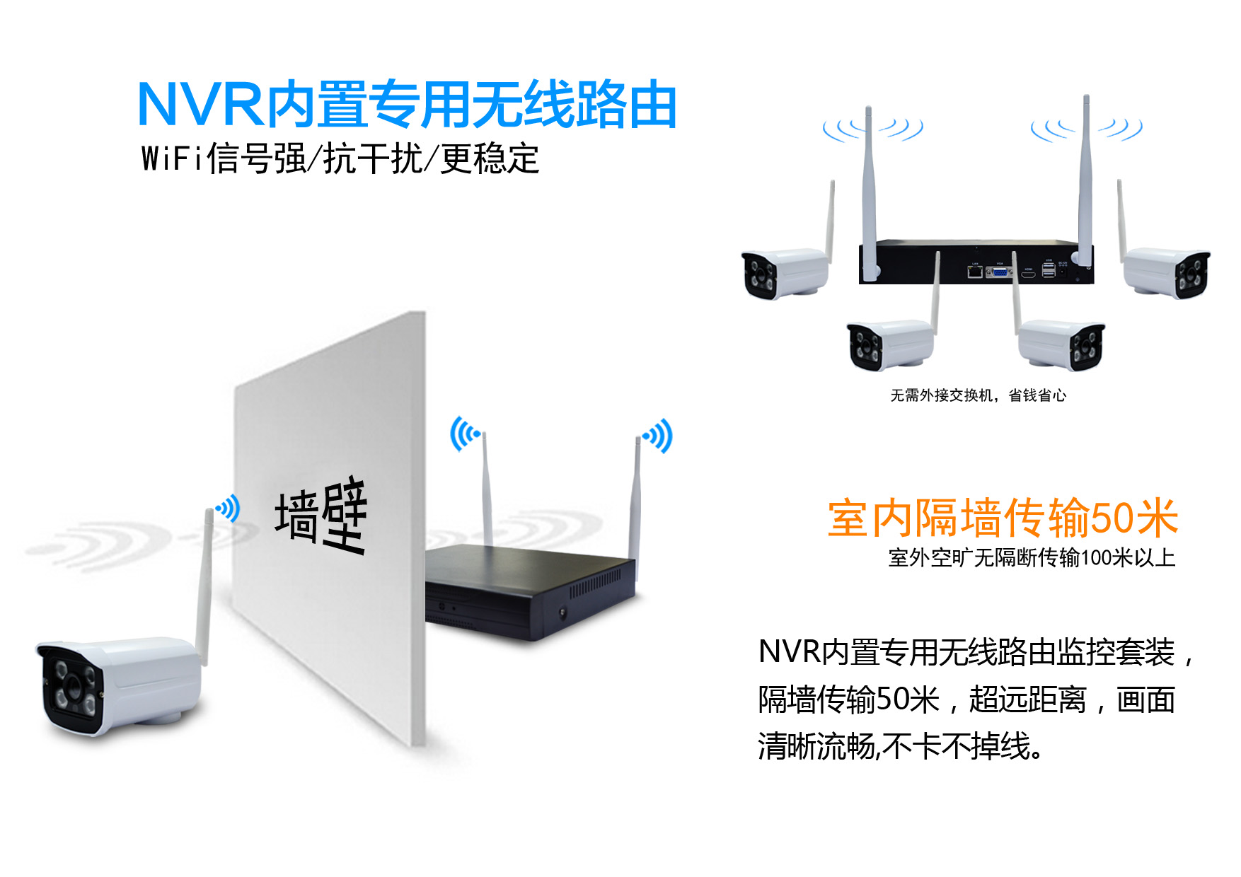 2、NVR内置专用无线路由,抗干扰能力强,安全可靠, 支持802.11b/g/n协议,150Mbps