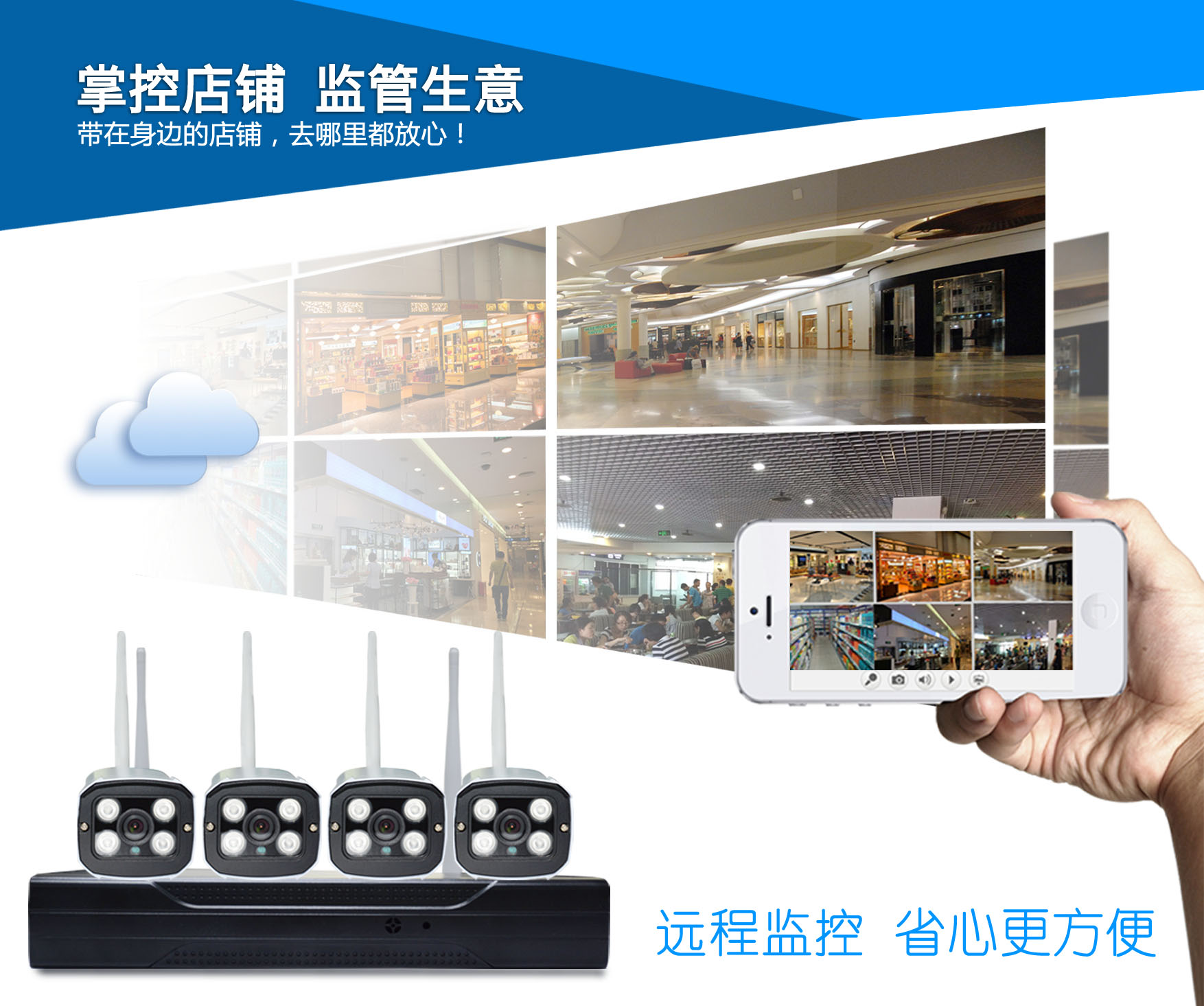 无线监控设备套装 4路录像机NVR网络摄像头 百万高清夜视