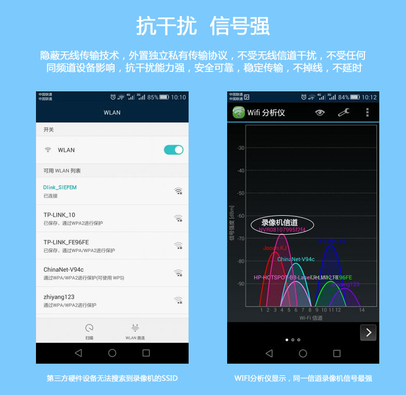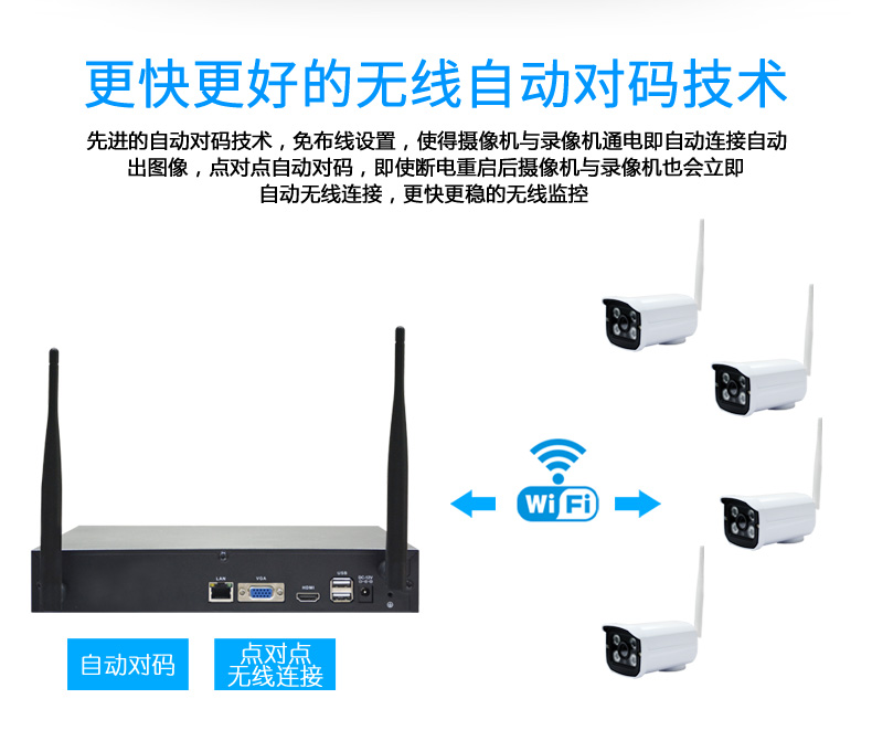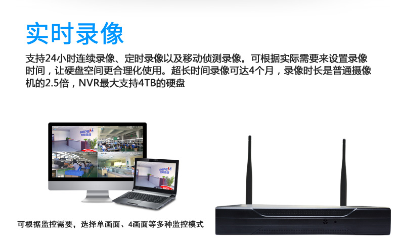 2、NVR内置专用无线路由,抗干扰能力强,安全可靠, 支持802.11b/g/n协议,150Mbps