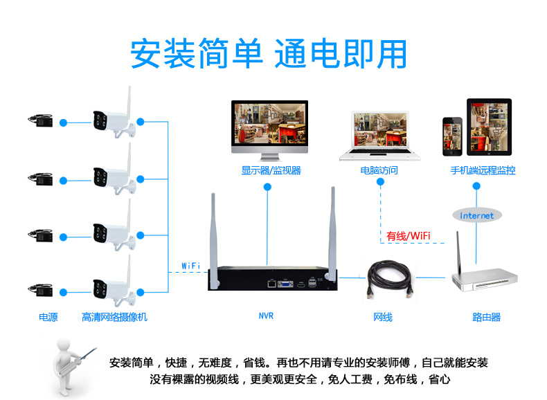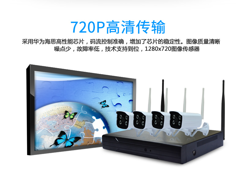 无线监控设备套装 4路录像机NVR网络摄像头 720P百万高清免布线