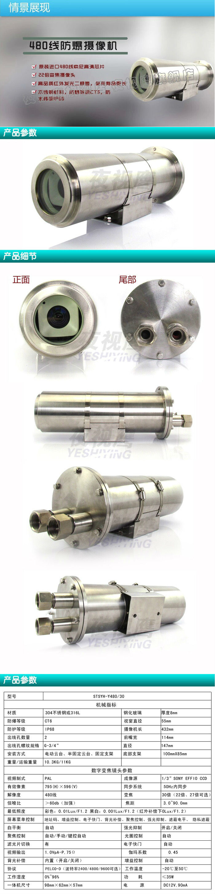 30倍变焦480线防爆摄像机