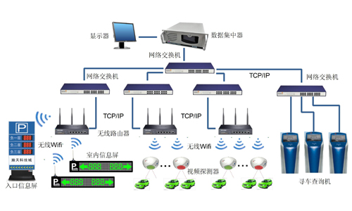 从停车场入口开始,使用信息引导屏、车位指示灯对车辆停车进行引导,采用视频探测器对车位的使用状况进行探测,采用车牌识别的前端识别技术对车牌信息进行识别,并将相关信息分析后发布到各引导屏中,车主根据引导屏所示数据,轻松找到空车位,实现高效停车以及停车场的高效使用,解决停车场拥堵、停车场使用率低、停车难等问题。