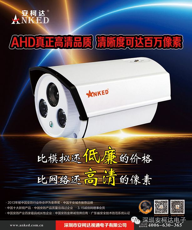 2014年10月,走过十年峥嵘历程的安柯达百万高清,推出最具性价比的私模产品。进入下半年,安柯达安防上线AHD高清摄像机全线产品。