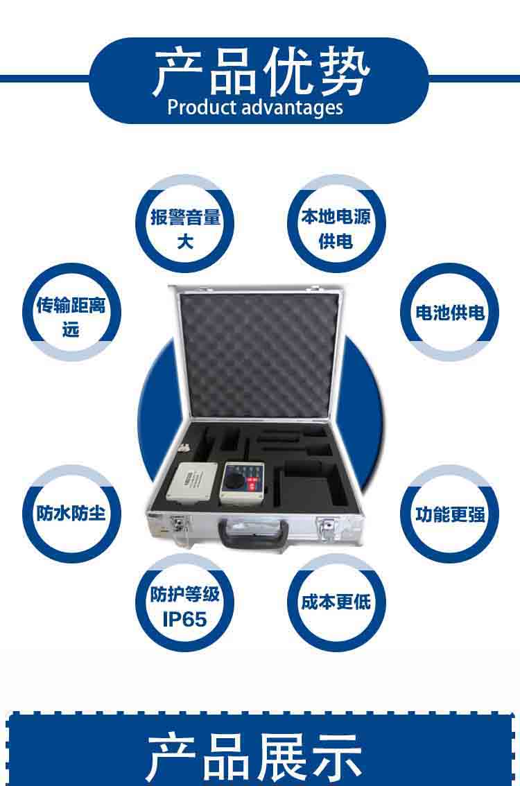 预警系统分为两个模块,即发送端及接收端,发送端安装在机械臂上部用于检测及发送报警信号,接收端安装在操作室内有人机界面用于控制和报警,发送端和接收端通过2.4G无线方式传输数据,无需特别布线同时可采用临时安装方案开箱即用,设备提供无源开关量接口可用于机械限动或驱动报警灯等设备。