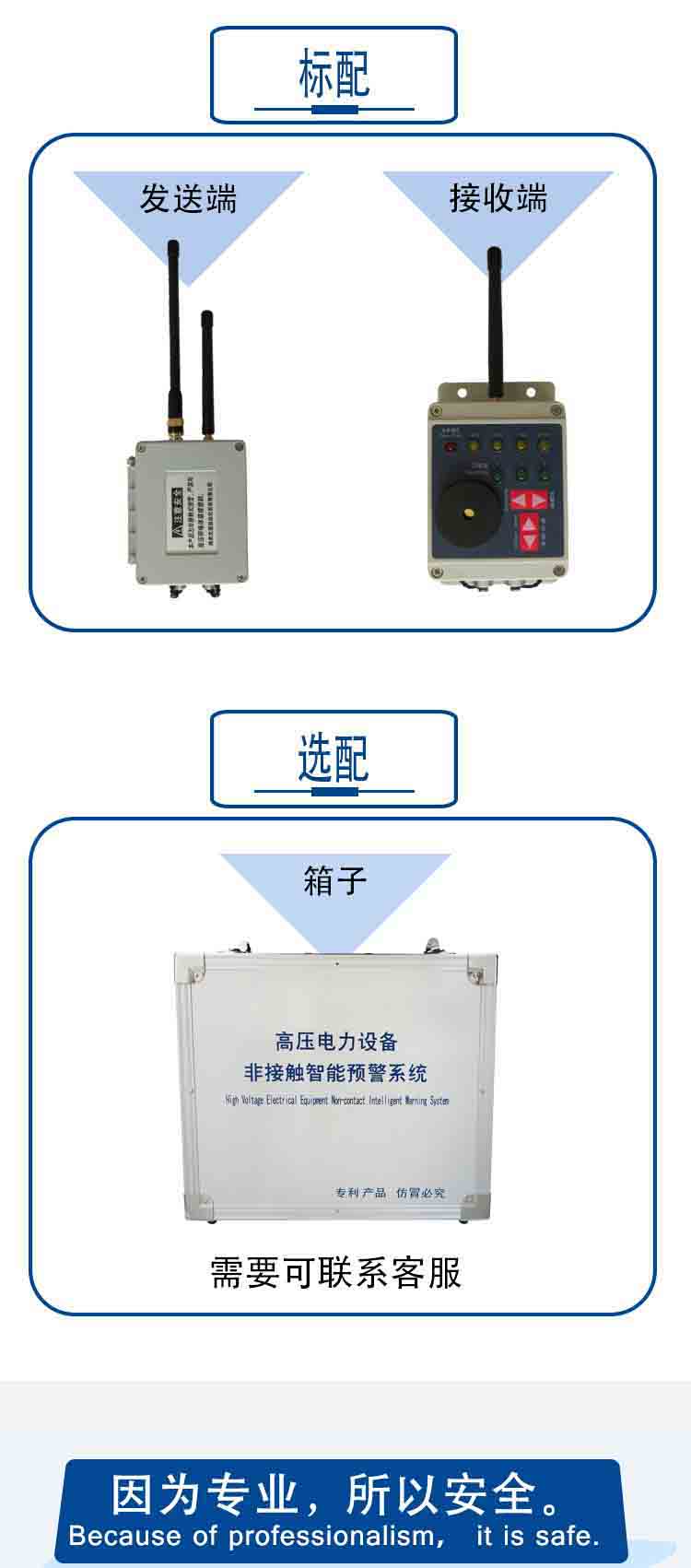 高压电力设备非接触智能预警系统(以下简称:智能预警系统)是根据作业车辆在超越高压电力设备规定安全范围作业时在非接触状态下的一种智能预警系统。YJM-52/53应用于高压线路支持10KV、35KV、110KV、220KV,主要安装在需要在高压线路下工作的大型作业车辆、消防车、高空作车等车辆上,用于防止作业时与高压线路距离过近发生事故,保障作业人员、车辆安全,同时也广泛应用于电力线路防外破的应用上。