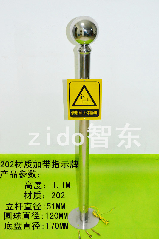 防爆人体静电消除球,它的外观是由不锈钢管和不锈钢球制成