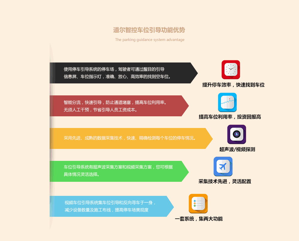 停车场管理智能化和传统停车场相比,免去了人工进行指导,统计停车场使用情况,车辆智能引导,根据探测器的结果进行数据统计、分析、已图标、地图实况显示等方式使停车场使用情况一目了然。