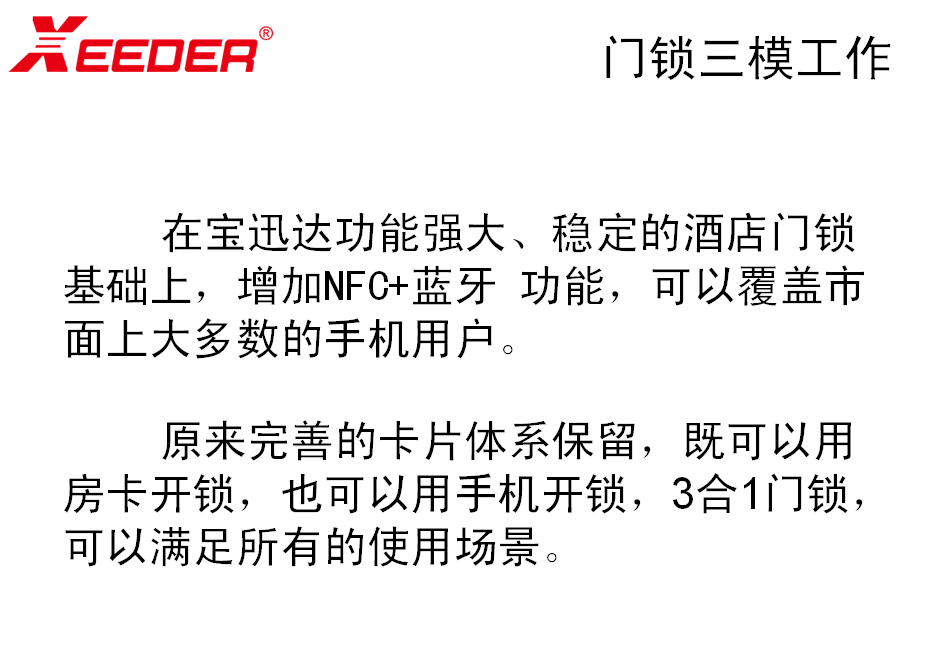 智慧酒店手机门锁的开门方式:NFC开门 、蓝牙4.0开门、微信开门、WiFi开门
