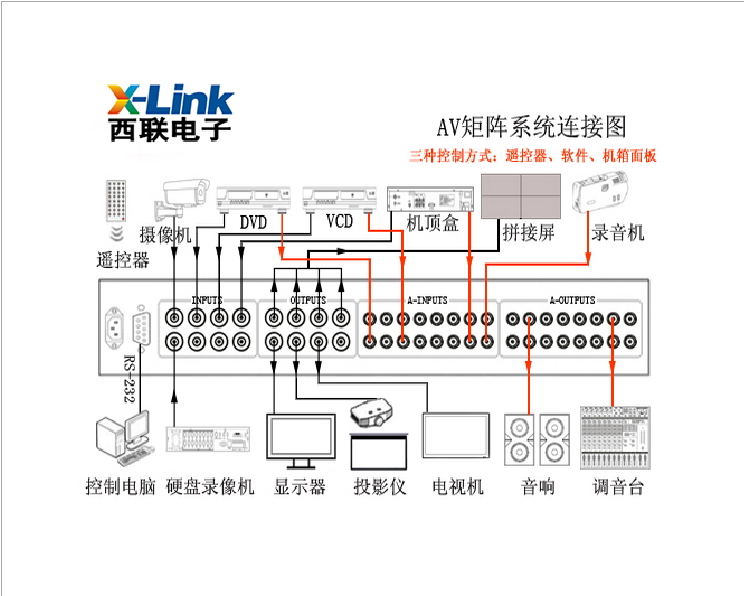 (1) 独立的矩阵切换输出;支持视/音频独立控制