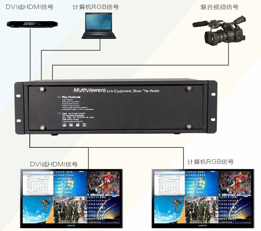 (3)支持CVBS、VGA、DVI、HDMI、SDI等多种信号输入