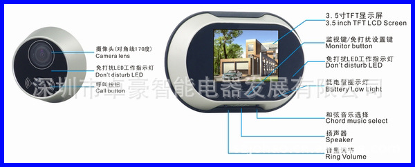 卓豪3.5寸彩色屏幕可视电子猫眼 别墅型实用电子猫眼