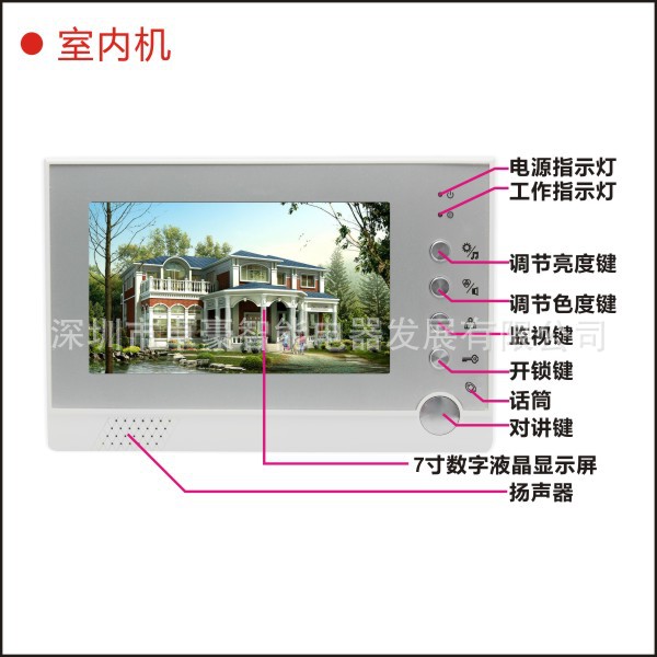 (1).7"数字液晶显示屏(显示室外及来访者影像)